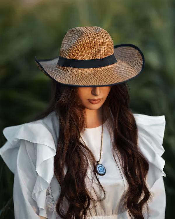 Korean-Inspired Wide-Brim Straw Hat with Bow Detail